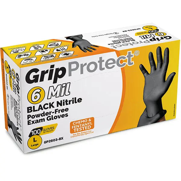 GripProtect® 6 Mil BLACK Nitrile Powder-Free Exam Gloves